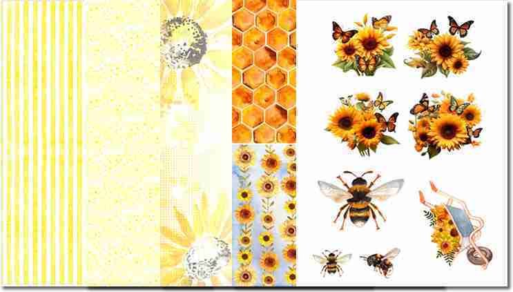Sunflowers and Bumblebees A4 Topper Set – Digital Product