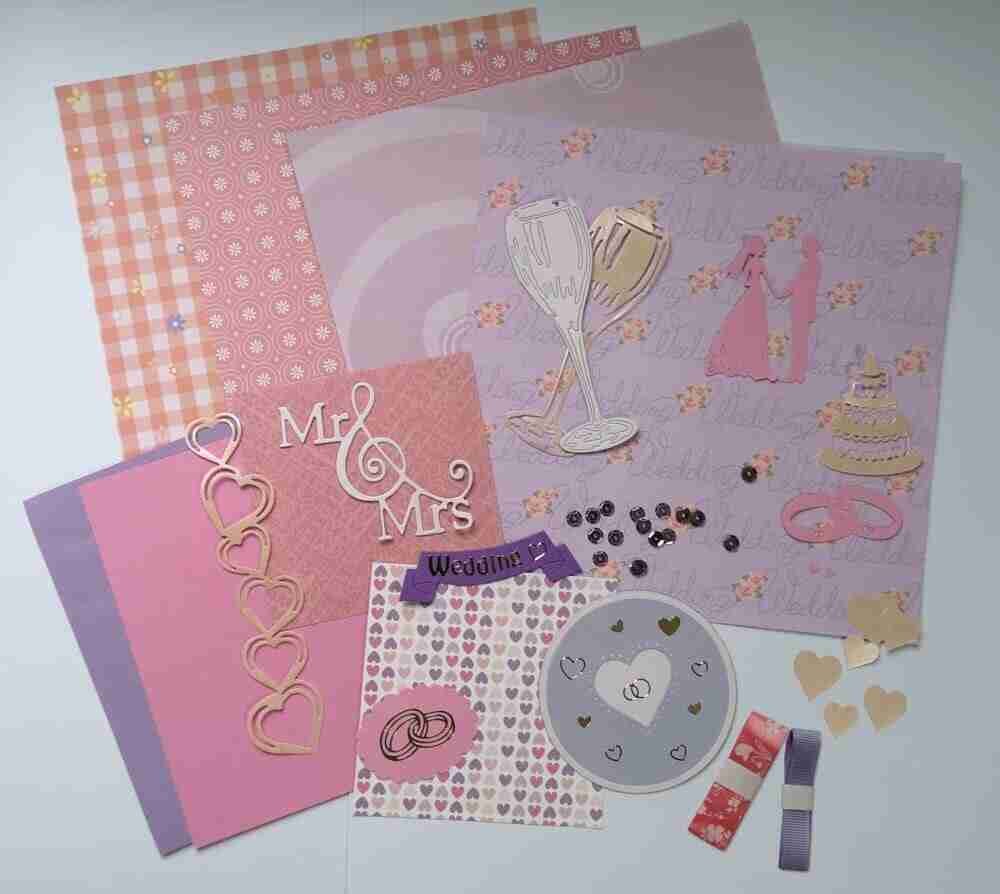 8×8 inch Pink and Lilac Wedding Scrapbook Album Kit